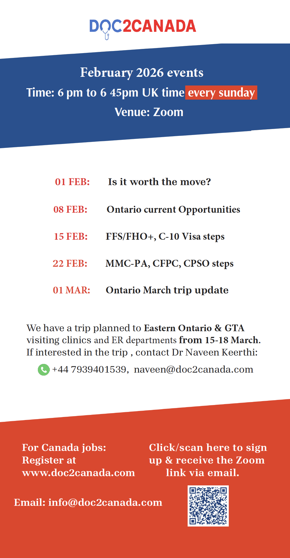 We are running a small-group Ontario Practice Discovery Trip for IMG doctors from 25–28 January 2026, including clinic and hospital visits in East Ontario plus meetings to discuss offers, housing, schools and relocation packages.